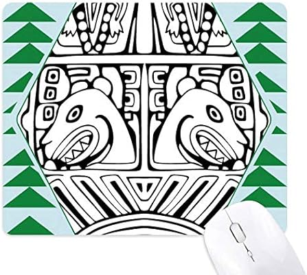 Indian Abstract Line Drawing Totem Pole Face Mouse Pad Green Pine