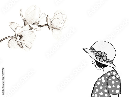 Drawing Girl Wearing Hat Stand Alone Buy This Stock
