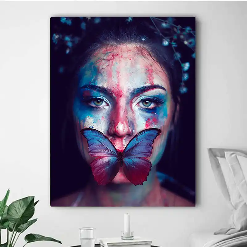 Beauty Women Butterfly Figure Portrait Art Abstract Watercolor