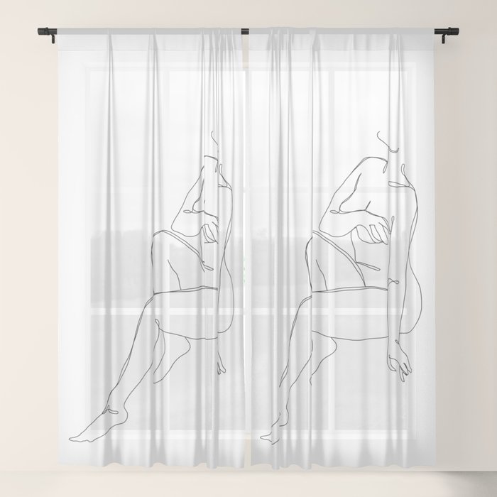 Nude Abstract Life Drawing Woman Megan Sheer Curtain By