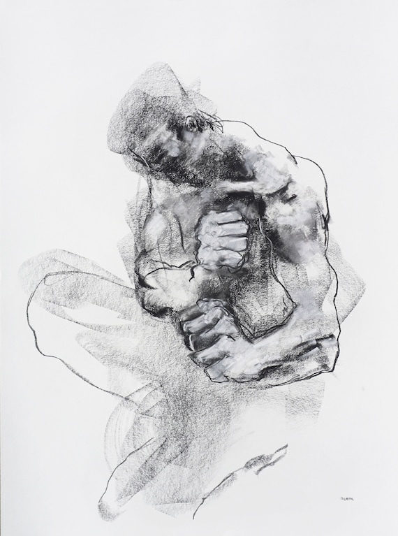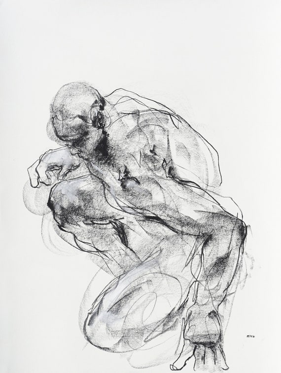 Abstract Male Nude Drawing Artistic Nude Artwork Figure Etsy