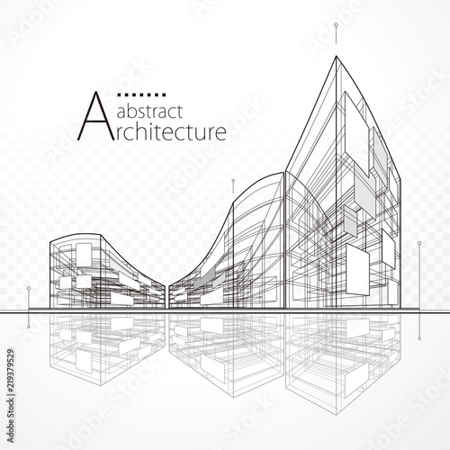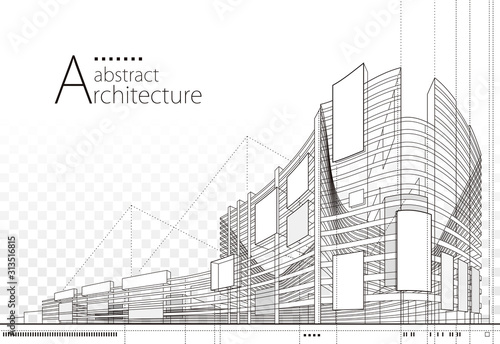 3d Illustration Abstract Architecture Building Line Drawing Stock