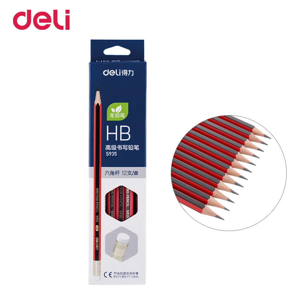Deli Hb Advanced Writing Pencil Hexagonal Black Red Bar Writing