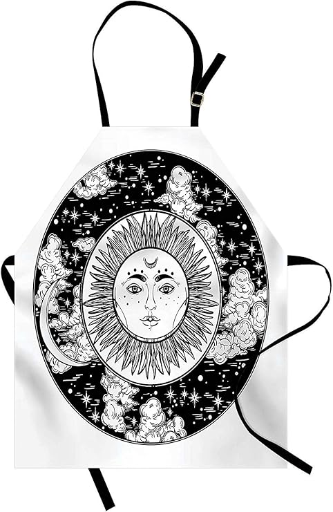 Amazon Com Sun And Moon Apron Mystic Tribal Drawing Of A Cloudy