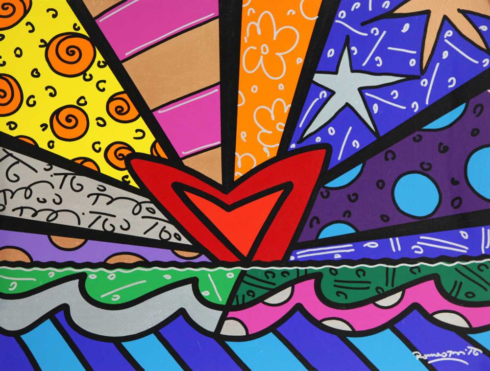 2020 Romero Britto Cartoon Abstract Art Colorful River Oil