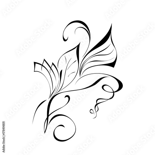 Ornament 156 Abstract Drawing With Leaf In Black Lines On A White