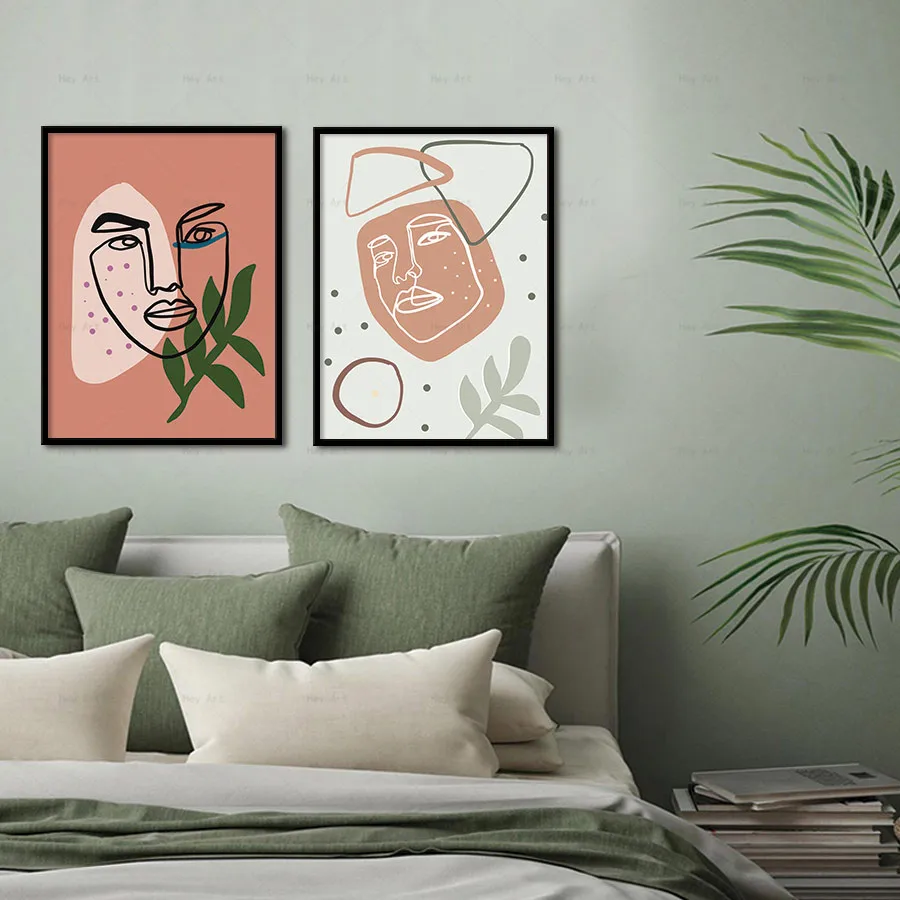 One Line Drawing People Face Modern Poster With Linear Abstract