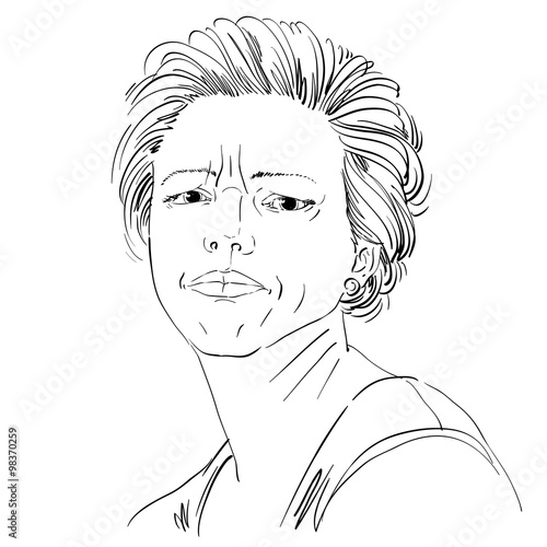 Vector Drawing Of Angry Woman With Stylish Haircut Black And Wh