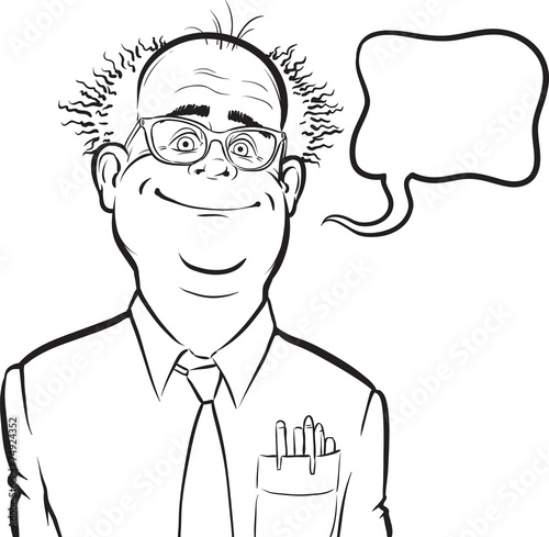 Whiteboard Drawing Cartoon Smiling Mad Professor With Speech B