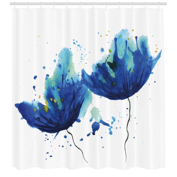 Blue Shower Curtain Watercolor Style Effect Floral Design