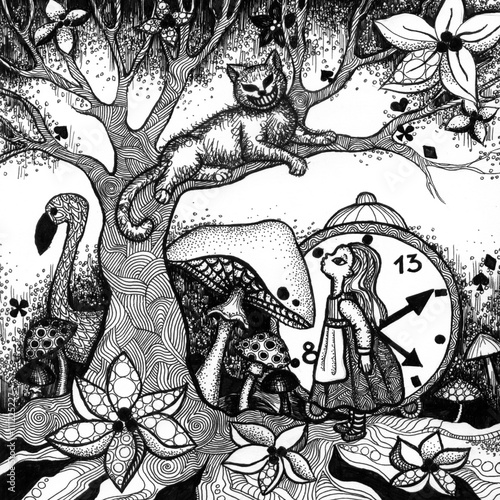 The Alice In Wonderland Story Hand Drawn Outline With Texture Isolated On The White Background Buy This Stock