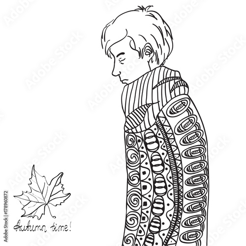 Hand Drawn Boy With Abstract Patterns On Isolation Background